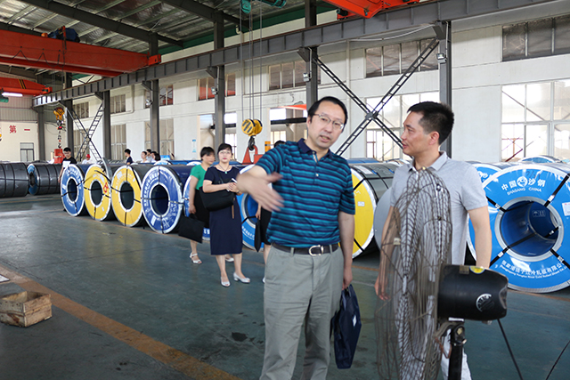 張志民總經(jīng)理引領(lǐng)商務(wù)局一行領(lǐng)導(dǎo)對泰州倉儲加工配送中心實地考察。