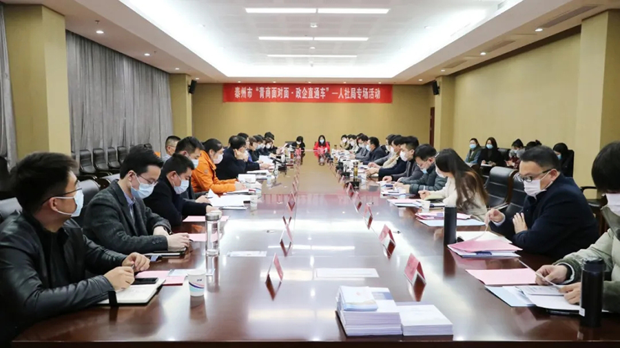 2月25日下午,由共青團(tuán)泰州市委、泰州市人力資源和社會保障局主辦的“青商面對面·政企直通車”——人社局專場活動在市人社局成功舉辦,團(tuán)市委書記翟文周,市人社局副局長陸玲,團(tuán)市委副書記張鵬飛,20名來自全市各領(lǐng)域的青年企業(yè)家和市人社局、團(tuán)市委相關(guān)業(yè)務(wù)中心(處室)負(fù)責(zé)人參加現(xiàn)場活動。