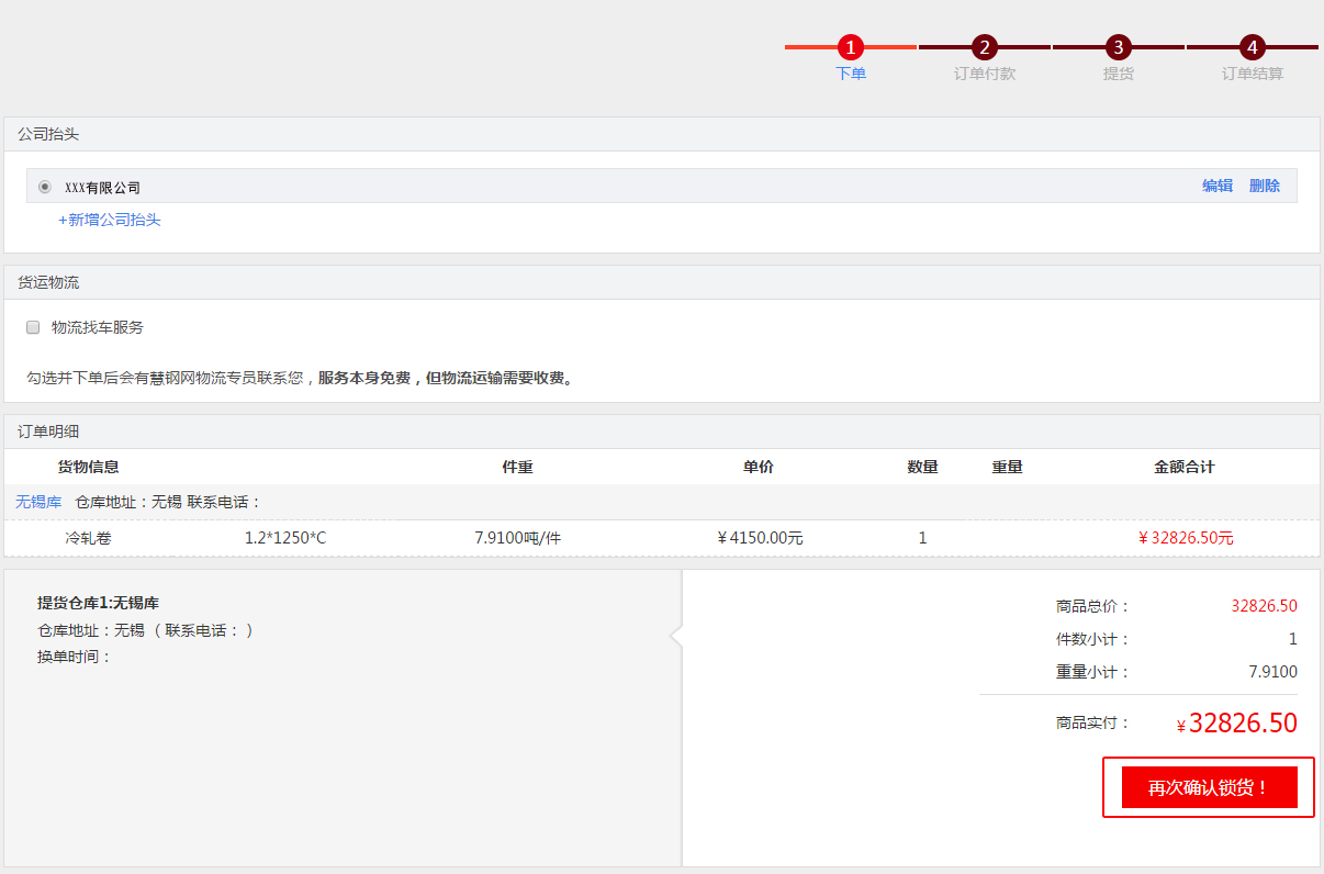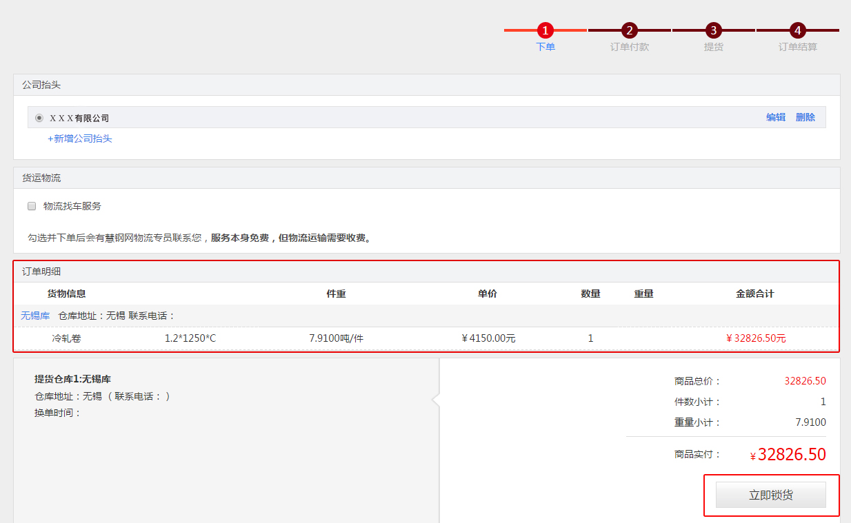 (9)點(diǎn)擊“去下單”之后會(huì)跳轉(zhuǎn)至“立即鎖貨”頁面,如不鎖貨,此商品還有機(jī)會(huì)被其他會(huì)員拍下的可能性。核對(duì)訂單明細(xì)之后,點(diǎn)擊“立即鎖貨”,則此貨物將沒有機(jī)會(huì)再被其他會(huì)員拍下。點(diǎn)擊一次“立即鎖貨”系統(tǒng)會(huì)自動(dòng)提醒是否再次確認(rèn)鎖貨,點(diǎn)擊“再次確認(rèn)鎖貨”則此商品離收入囊中僅剩一步之遙了。