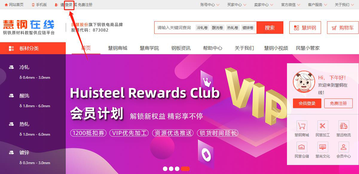 (4)點(diǎn)擊右上角“我的慧鋼在線”