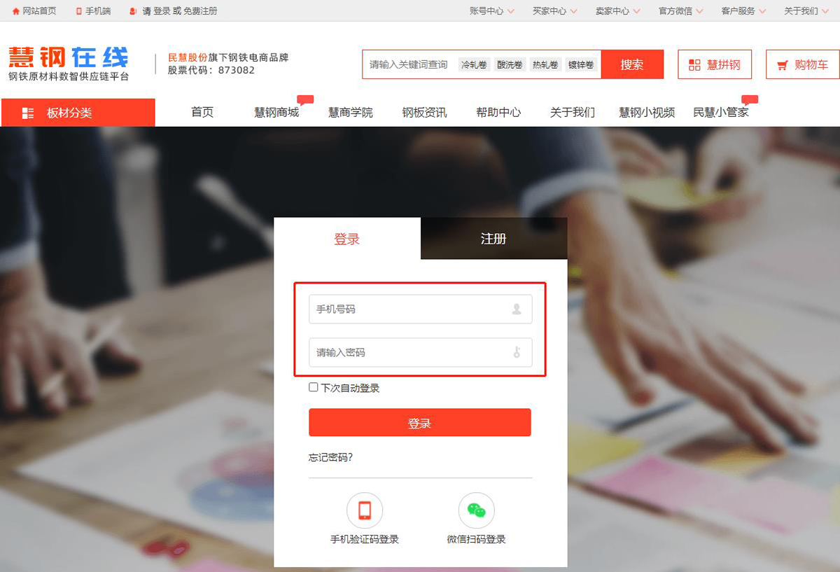 (1)訪問慧鋼在線首頁www.aichengbo.cn