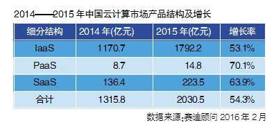 賽迪顧問發(fā)布的《2014-2015年中國(guó)云計(jì)算市場(chǎng)產(chǎn)品結(jié)構(gòu)及增長(zhǎng)》顯示,2015年我國(guó)SaaS市場(chǎng)規(guī)模達(dá)到223.5億元,增長(zhǎng)63.9%。在2016年乃至可預(yù)見的未來(lái),SaaS仍將進(jìn)一步擴(kuò)大市場(chǎng)規(guī)模。