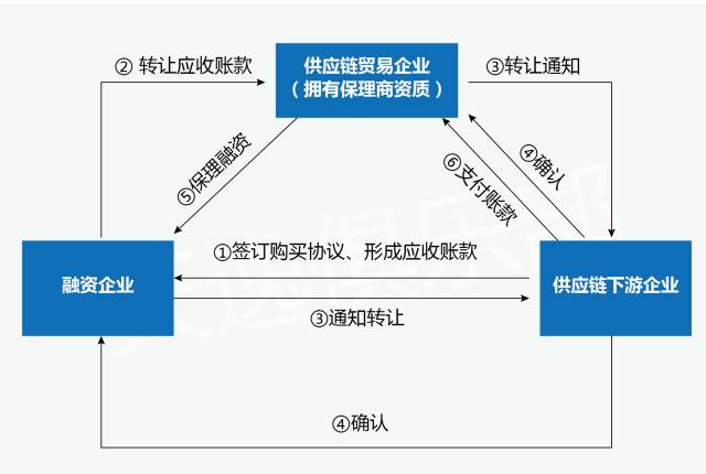 3)反向保理(逆保理)。供應鏈保理商與資信能力較強的下游客戶達成反向保理協(xié)議,為上游供應商提供一攬子融資、結算方案,主要針對下游客戶與其上游供應商之間因貿易關系所產生的應收賬款,即在供應商持有該客戶的應收賬款時,得到下游客戶的確認后可將應收賬款轉讓給供應鏈保理商以獲得融資,與一般保理業(yè)務區(qū)別主要在于信用風險評估的對象轉變。